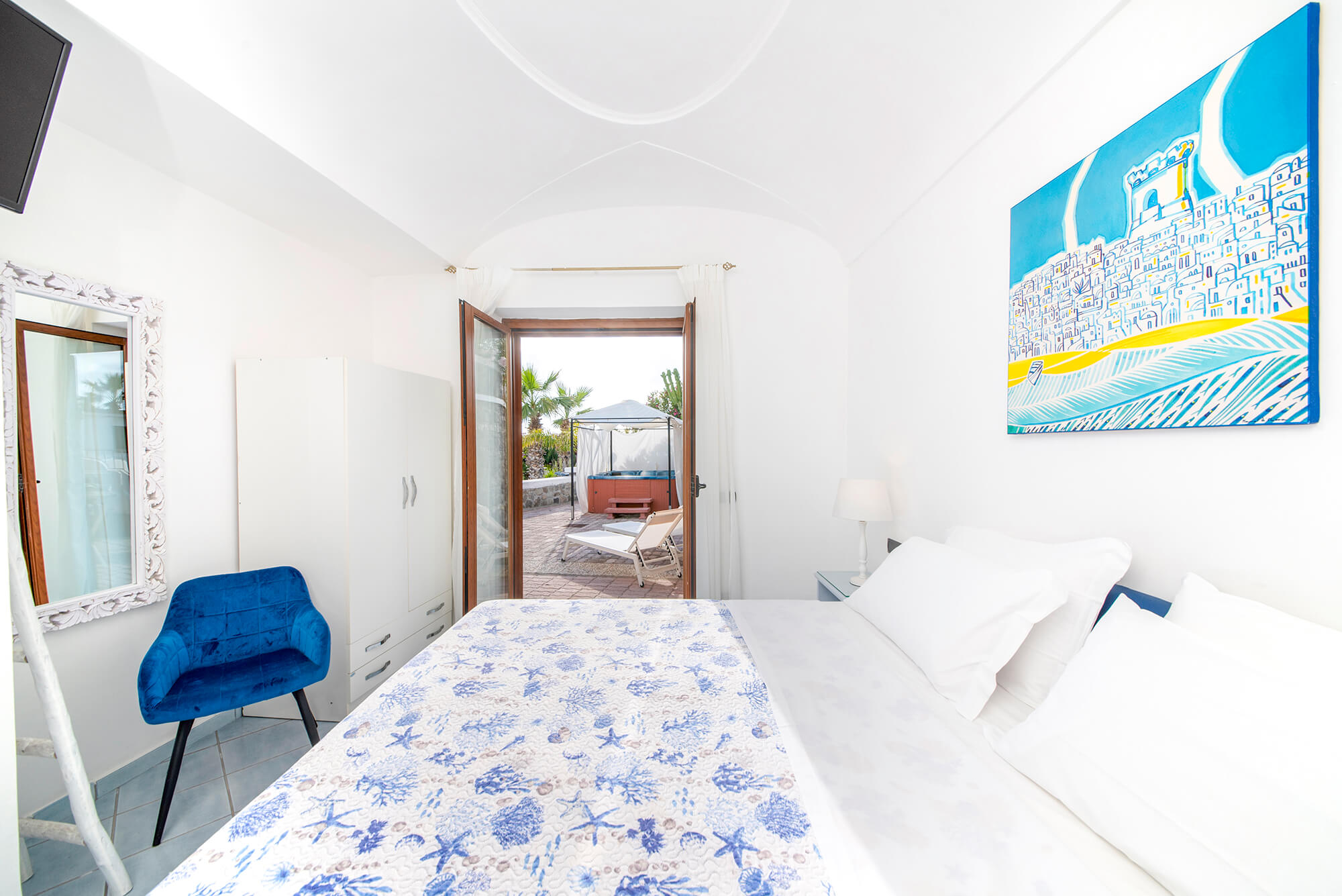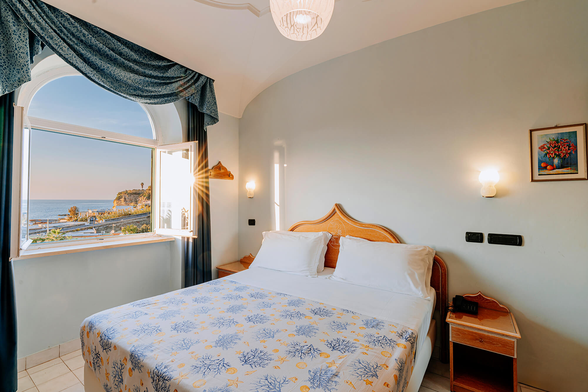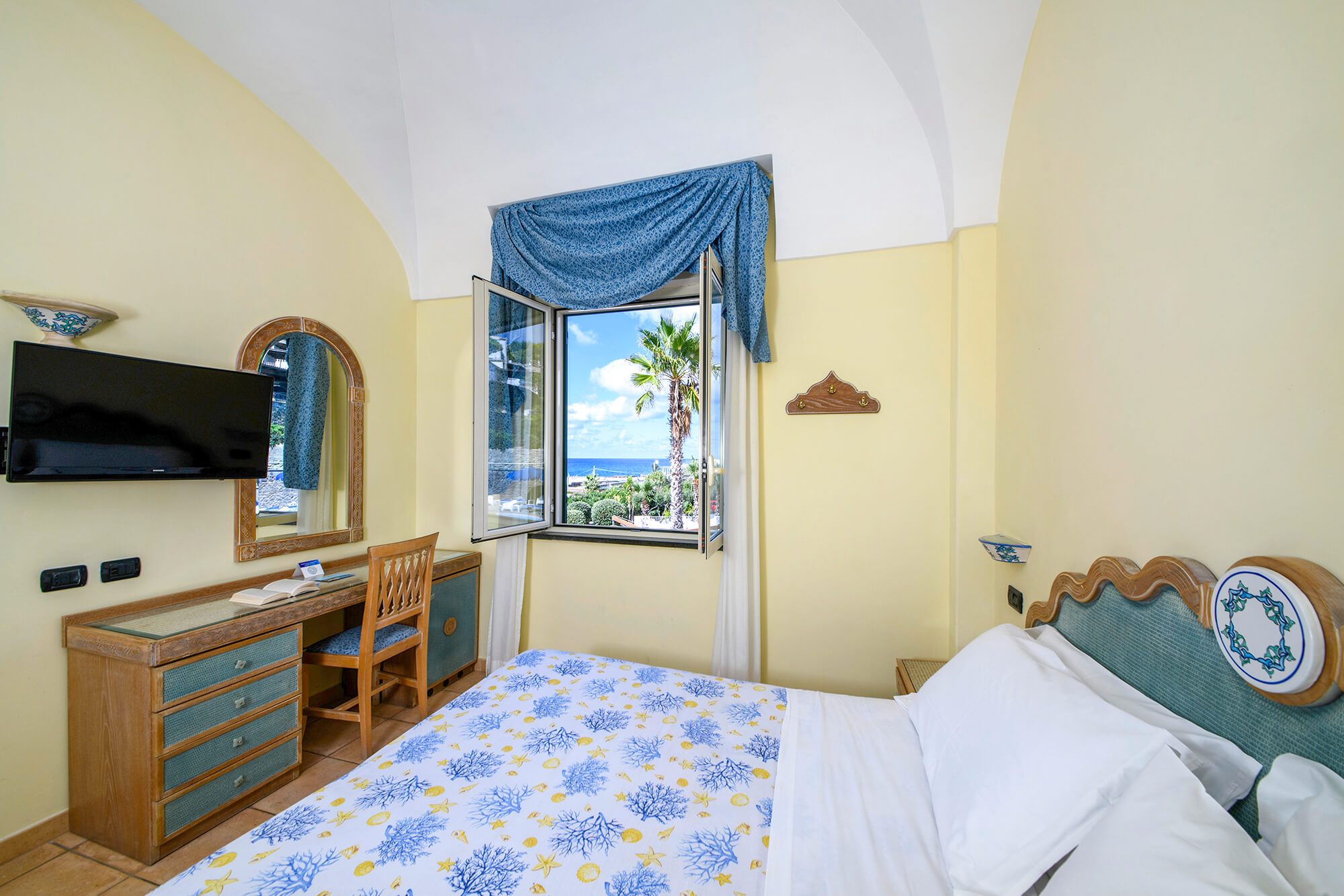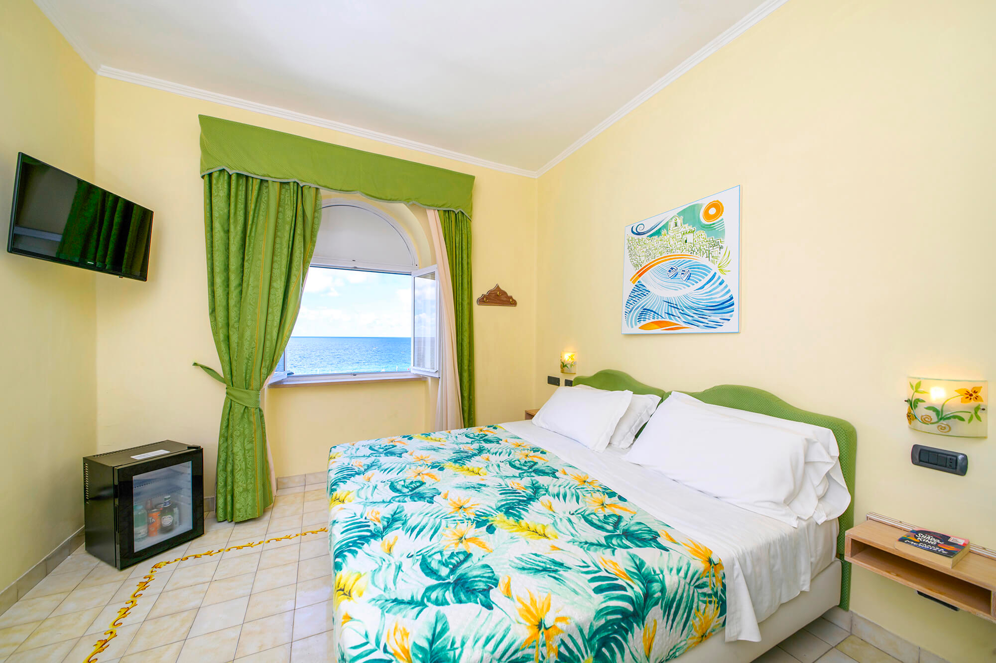 Molte camere regalano una vista suggestiva sulla Baia di Citara o sul paesaggio circostante, da godere al risveglio o al tramonto. Tutte sono dotate di Wi-Fi gratuito, aria condizionata, TV, minibar, bagno privato e set di cortesia.
