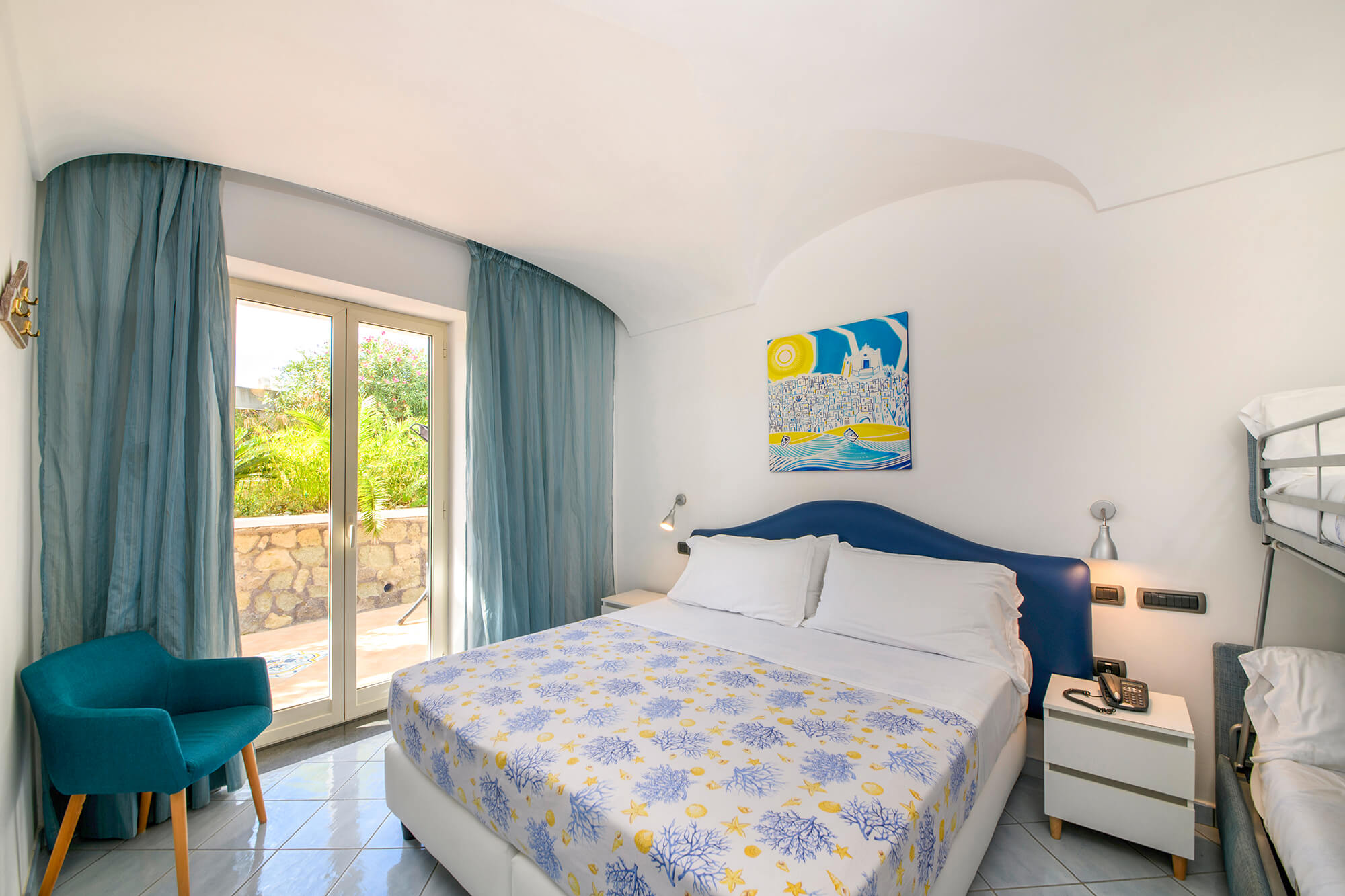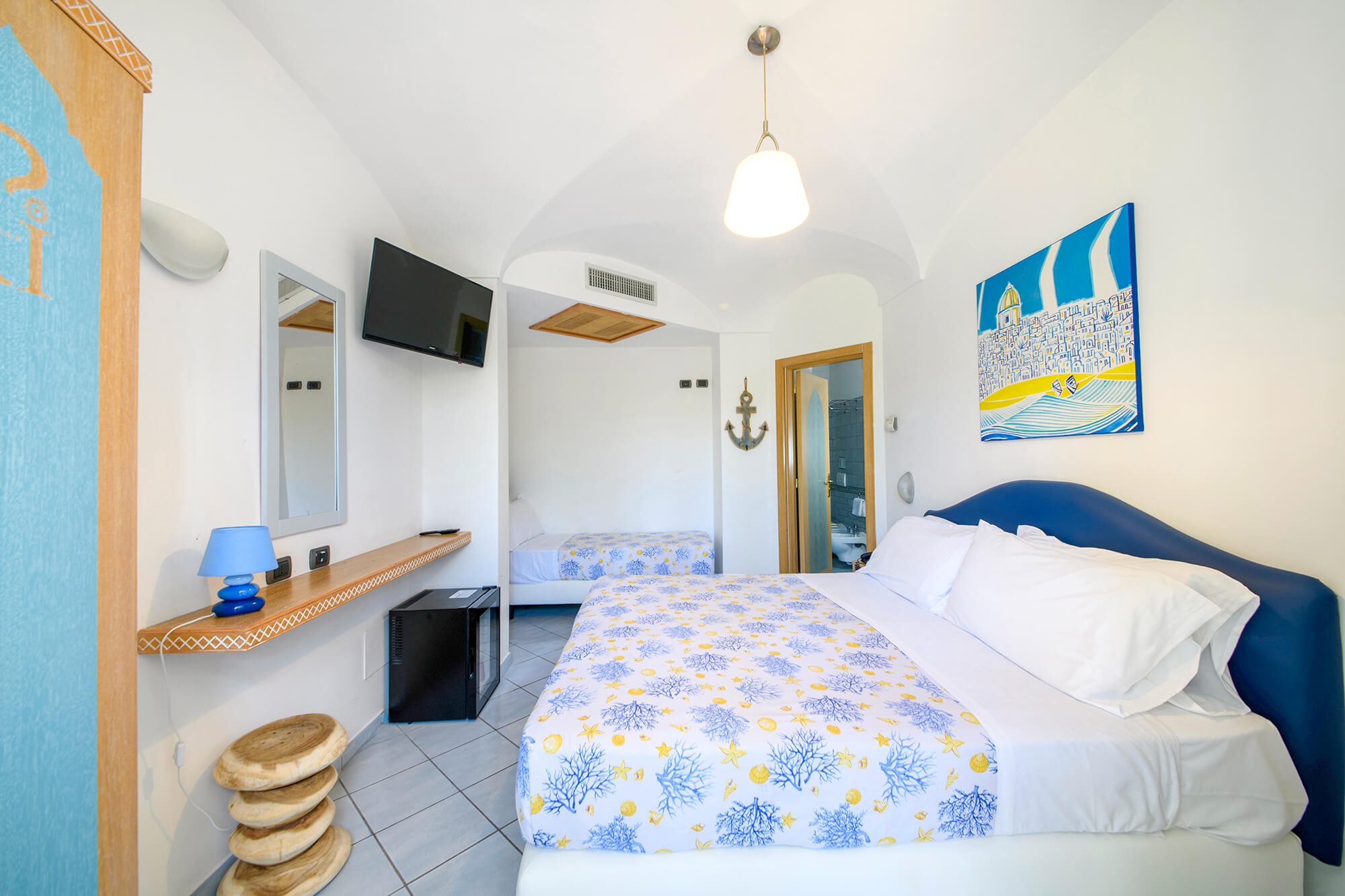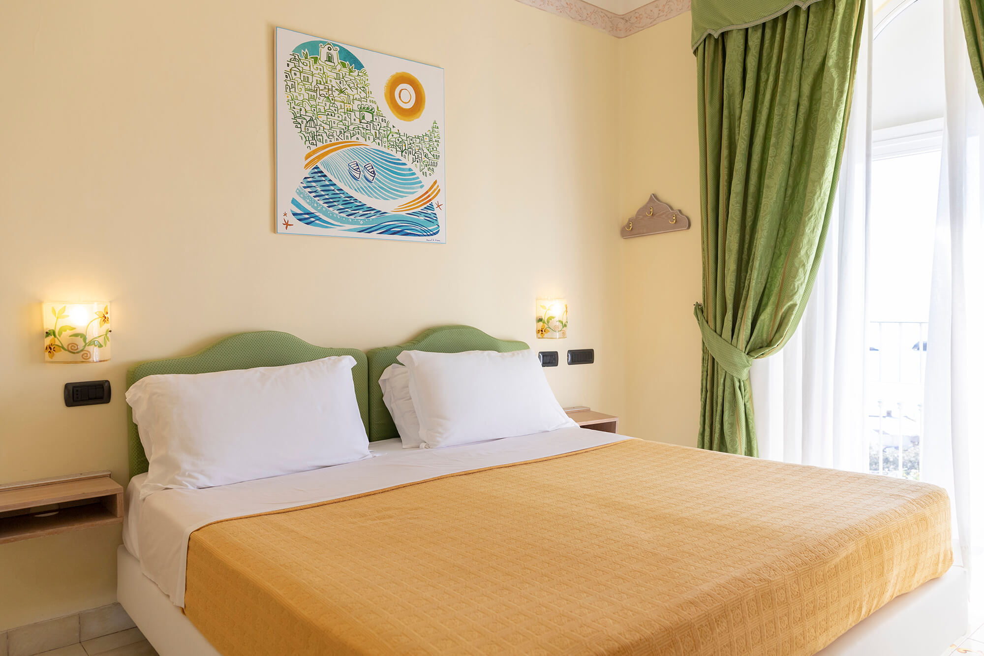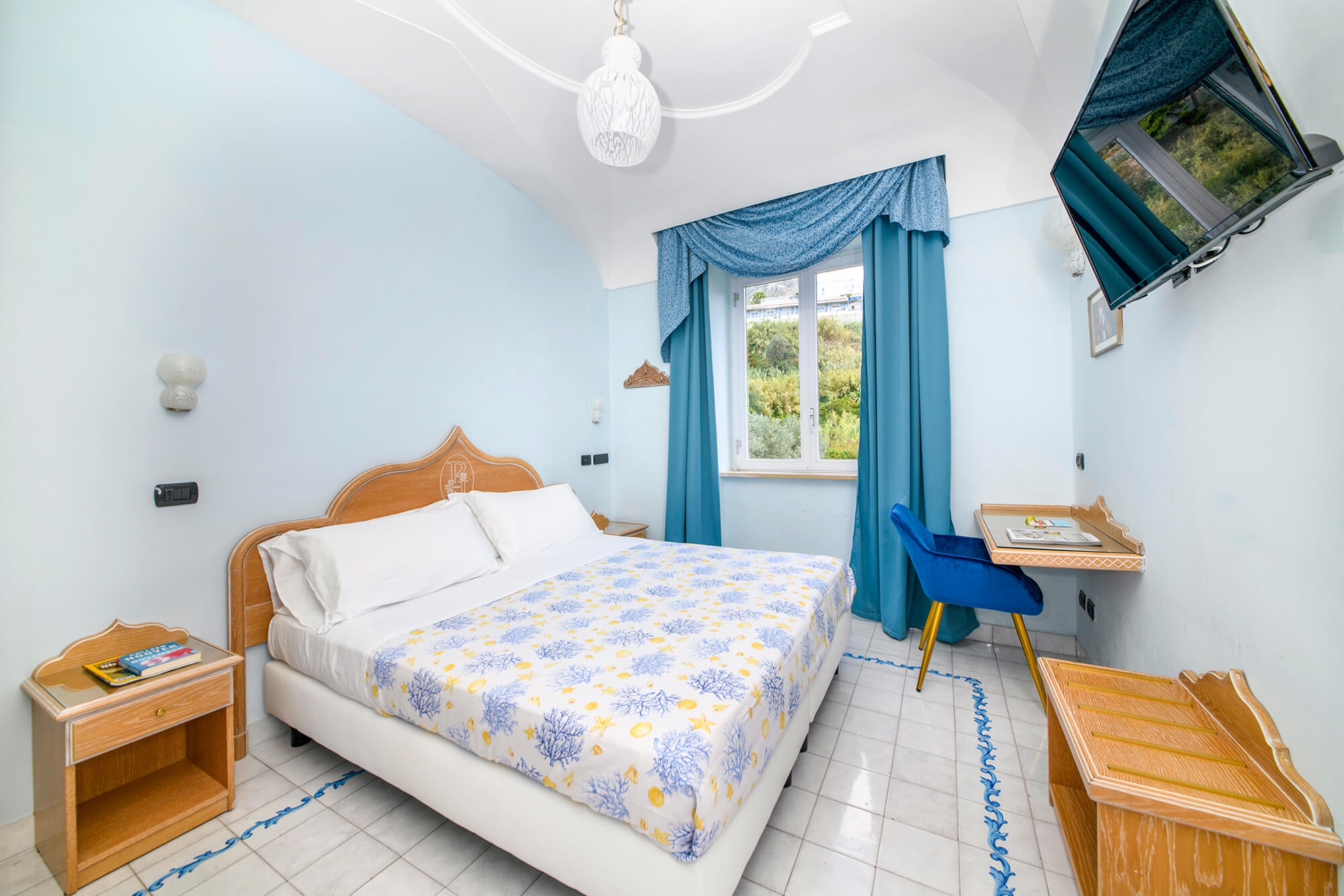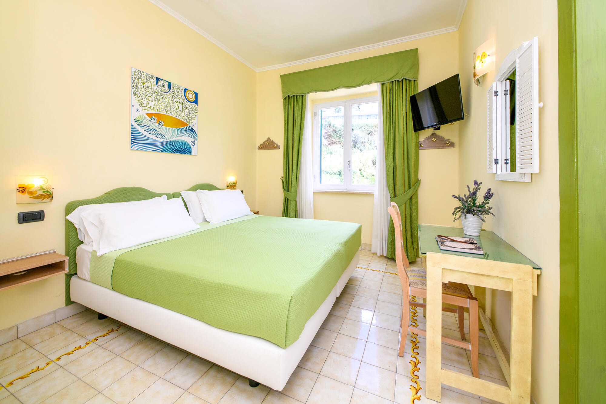 Molte camere regalano una vista suggestiva sulla Baia di Citara o sul paesaggio circostante, da godere al risveglio o al tramonto. Tutte sono dotate di Wi-Fi gratuito, aria condizionata, TV, minibar, bagno privato e set di cortesia.