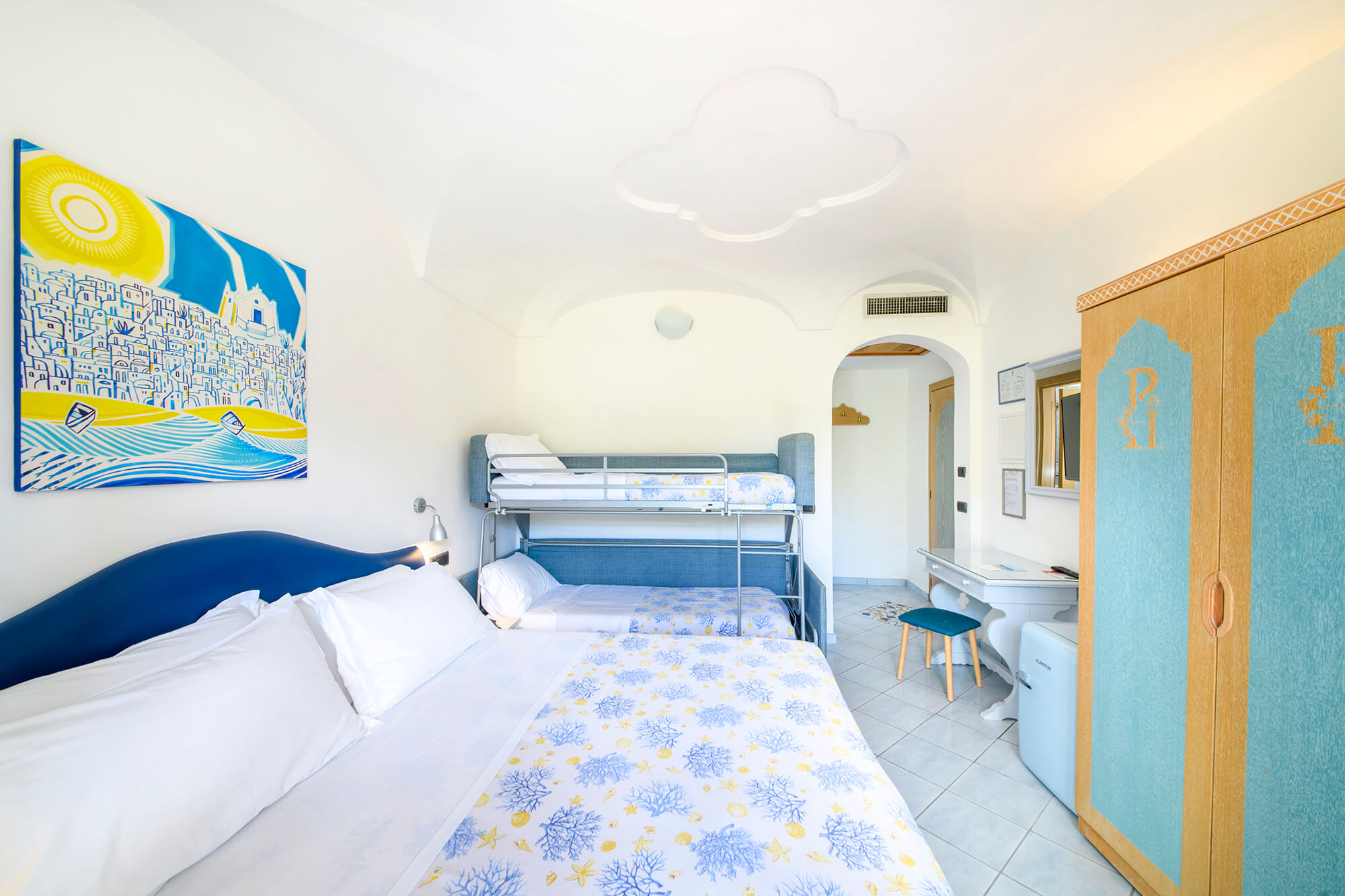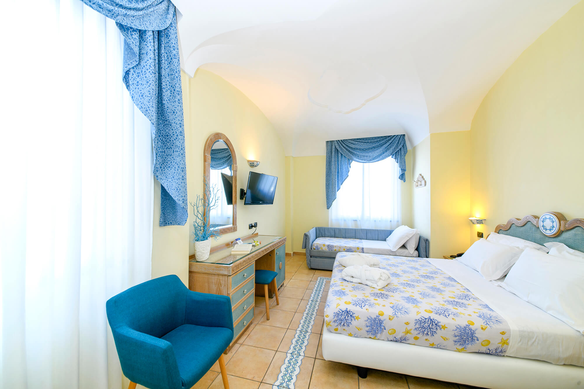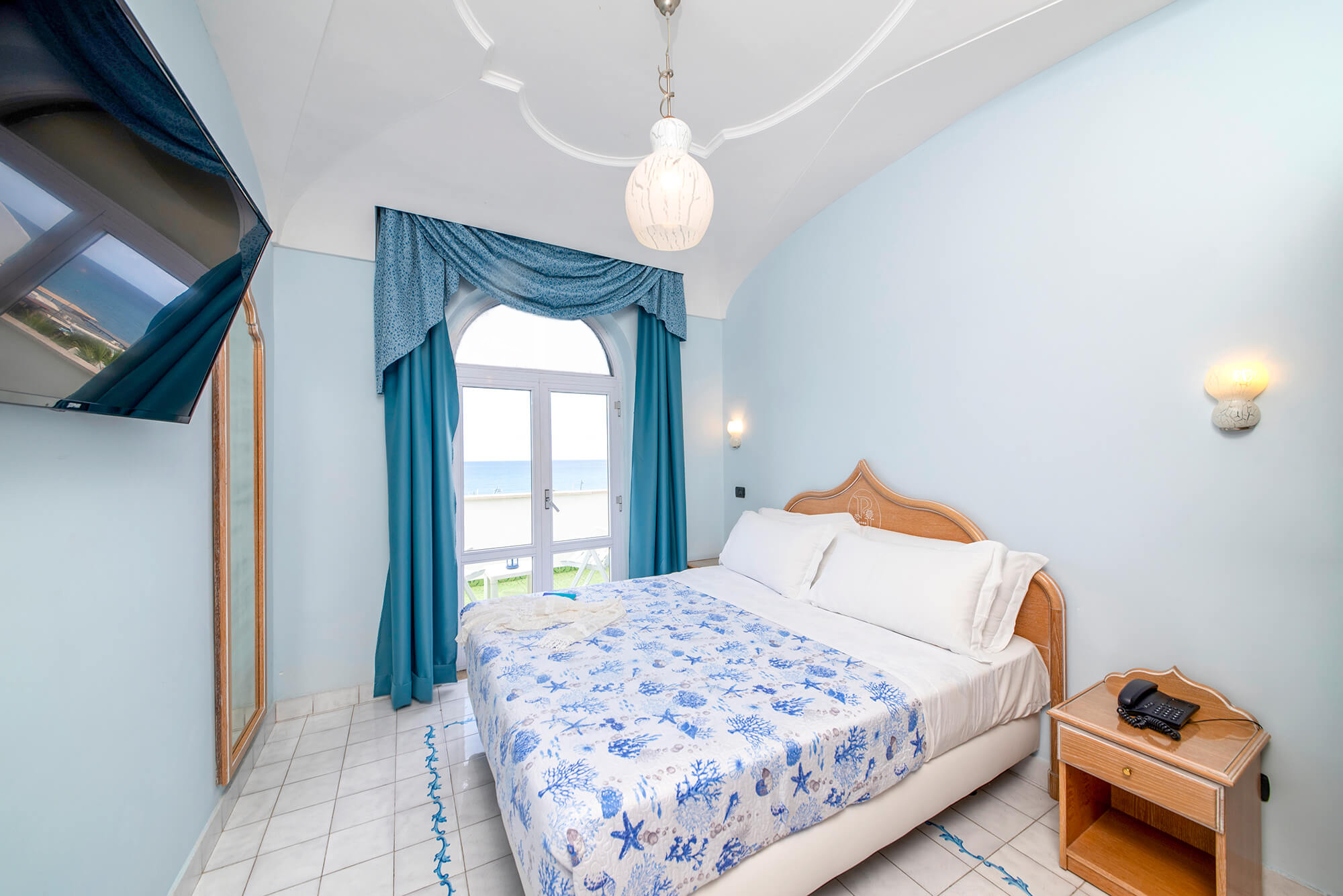 Potrai scegliere tra camere Standard, Vista Mare, Vista Mare con Balcone, Family e le raffinate Deluxe “La Torre”. Ogni tipologia risponde a esigenze diverse: dalle soluzioni funzionali e comode, alle più esclusive, come le Deluxe con due ambienti separati, ampia terrazza privata e piscina idromassaggio.