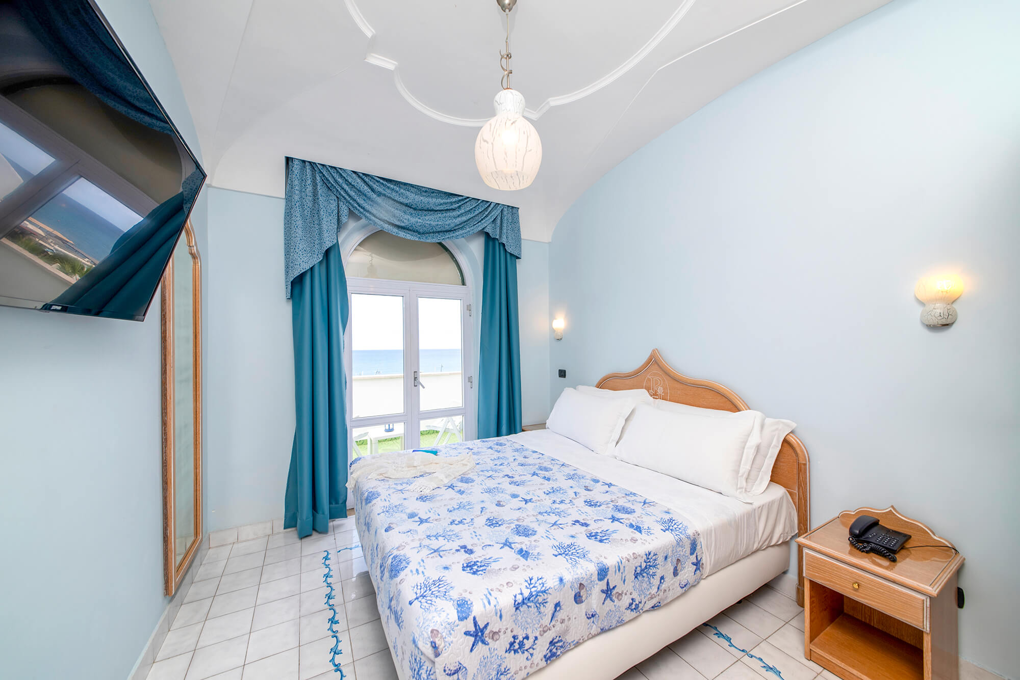 he rooms at Hotel Punta Imperatore are the ideal solution for those who want a comfortable and relaxing stay directly on the sea. Each room is furnished with simplicity and care, offering bright spaces and beautiful views of Citara Bay or the surrounding landscape. You can choose between Standard, Sea View, Sea View with Balcony, Family and the refined Deluxe “La Torre” rooms, perfect for those looking for a more exclusive experience during their holiday in Ischia. All rooms are equipped with free Wi-Fi, air conditioning, TV, minibar and private bathroom with shower cubicle. Whether you're planning a romantic getaway, a family trip, or a relaxing weekend getaway, Hotel Punta Imperatore offers the perfect solution for your stay in Ischia.