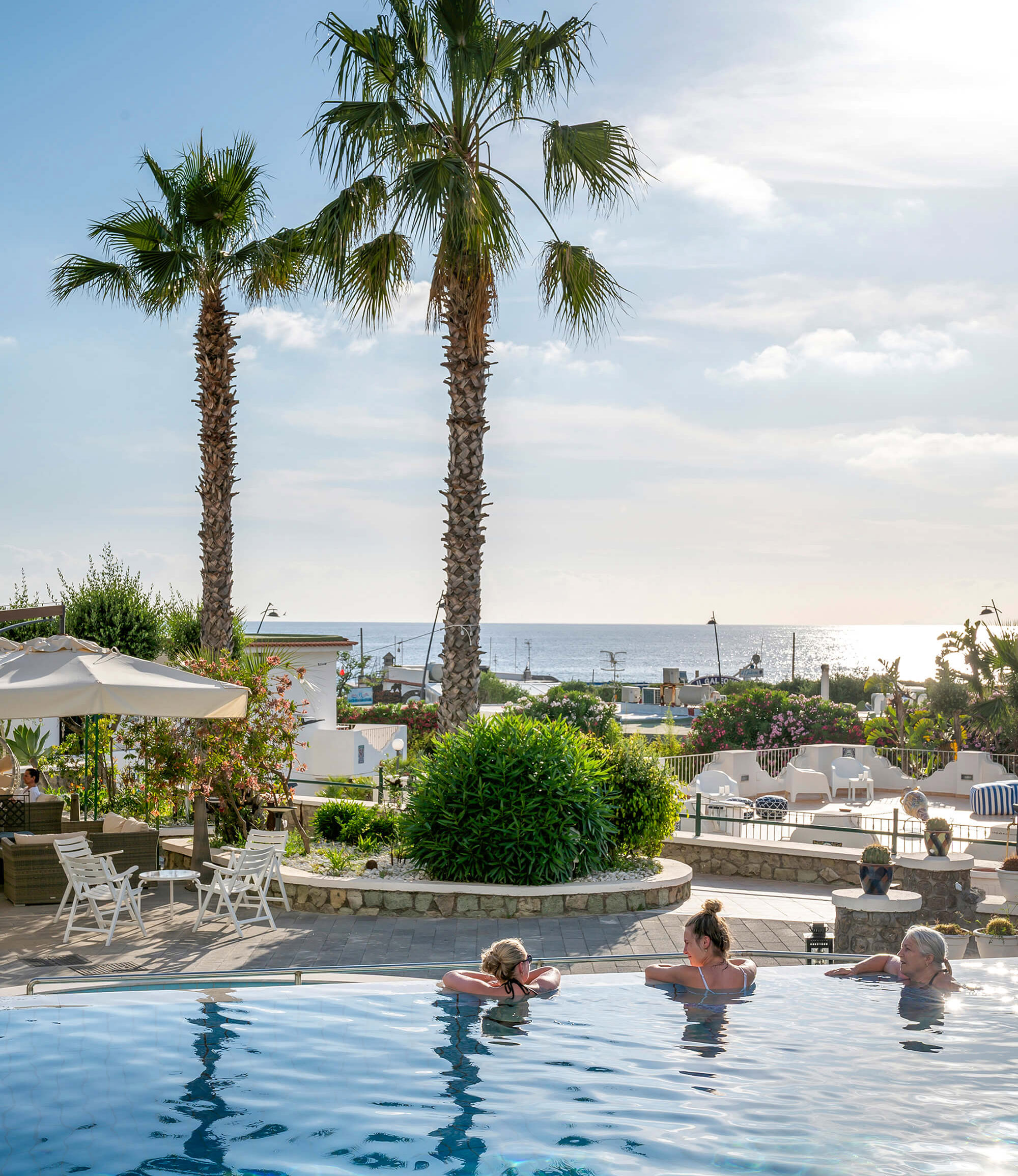 The property has two outdoor pools with naturally heated water, equipped with hydromassage jets and cervical waterfalls, a kneipp course and a Turkish bath perfect for relaxing your mind and body at any time of day. It also has a small pool of water nature for children. Next to the pools, you’ll find a large solarium equipped with sun loungers and umbrellas, where you can read a book or simply admire the magnificent sunsets of Forio.