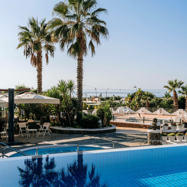 A welcoming, well-kept and never crowded environment, designed to offer you tranquility and comfort, with the possibility of enjoying an aperitif by the pool and participating in pleasant evenings with live music.