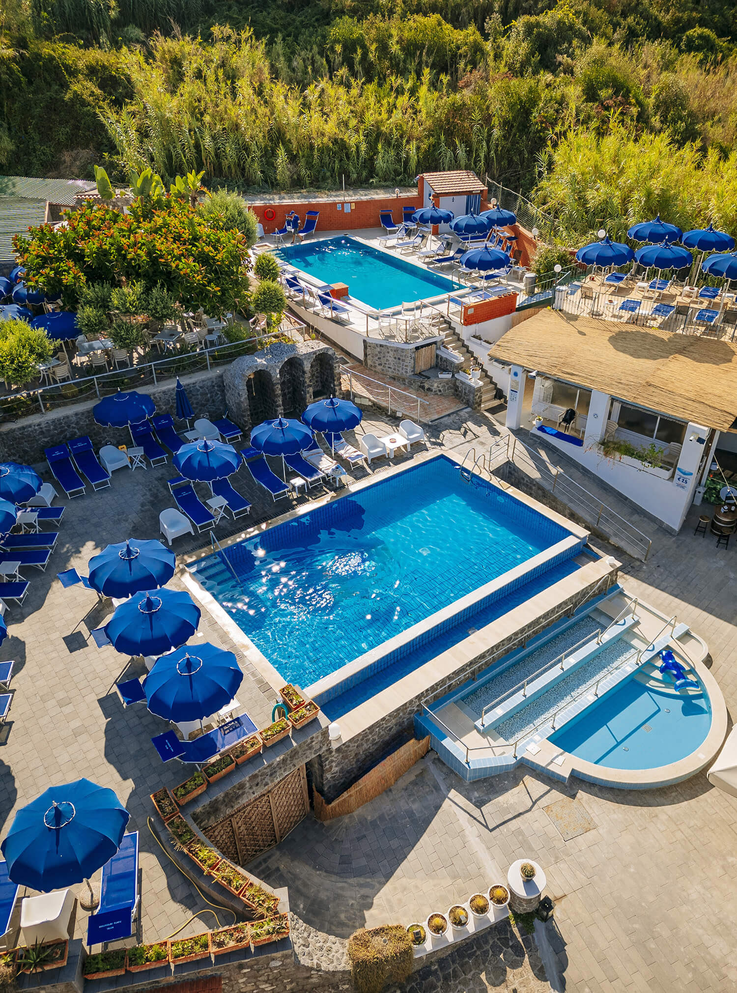 Affacciato sulla splendida Baia di Citara e immerso nel verde, il Parco Piscine dell’Hotel Punta Imperatore è il luogo ideale per rilassarsi a ogni ora del giorno. Le nostre piscine, con acqua minerale e temperature differenziate, sono pensate per offrirti un’esperienza rigenerante e completa: getti idromassaggio, cascate cervicali, percorso Kneipp, bagno turco, un ampio solarium ed un’area dedicata ai più piccoli con piscina a loro misura.
